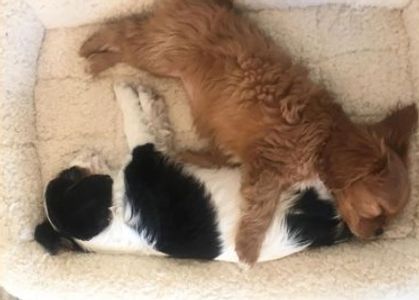 It was nice meeting you, your daughter and Stassi. Molly is settling in and in bed. She is a very good girl. Our 2 kitties met her right away. Molly did well. The 3 of them were sniffing noses. I'll take pictures after work tomorrow. We stopped and picked up a play pen so that we can block the stairs until she is older and can go up and down them. I gave Molly her big brother's (Ollie's) kennel to sleep safely next to mom at night. They are both sleeping now. Tomorrow I will buy her a harness and leash to learn to walk on a leash a little at a time and to go potty outside. Have a good evening. Thank you for this chilled little girl. I'm still grieving my Ollie of course, but she is already helping with the hole in our hearts.