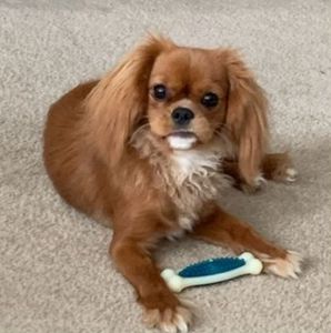 Margie, I thought you might enjoy a picture of your little Cavalier. I named him Charlie. I really love him. Thank you so much.