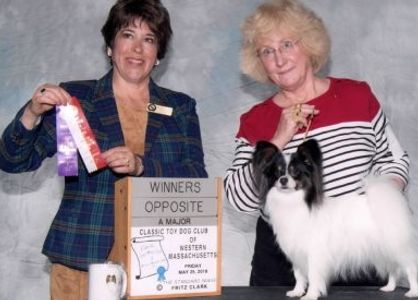 The Nor’East Toy Dog Cluster was Pippa’s first venture into multiple shows in a day. The Classic Toy Dog Club of Western Massachusetts, Inc. hosted Friday morning, May 25 and Saturday May 26. The Town & Country Toy Dog Club of Eastern Massachusetts, Inc. hosted Friday afternoon, May 25 and Sunday May 27. The venue was the Wide World of Indoor Sports in North Kingstown, Rhode Island. The shows are well attended. Pippa won the Friday morning show!! It was her first win, a five point major!! Friday afternoon she went reserve. I was even more surprised at her Saturday morning win, another five point major!! Sunday she finished up the week end going reserve. To say we were walking on air is an understatement. What a wonderful way to end the cluster. The “Pip” was right on, it finally clicked. We truly appreciated the many compliments she received. I am ever so grateful that Margie has trusted her to my care.
