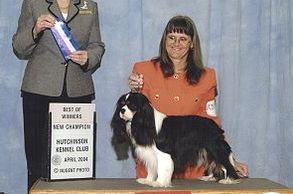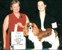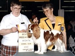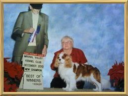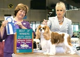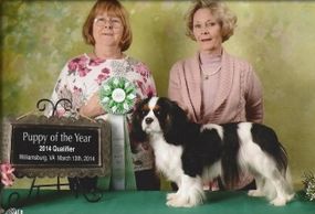 "She qualified for puppy of the year competition with the Cavalier king Charles Spaniel Club,USA at nine months old. She earned her AKC championship this past January before she was two years old. She has almost achieved her AKC Grand Championship."