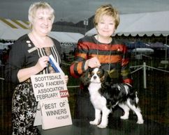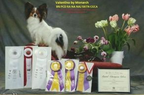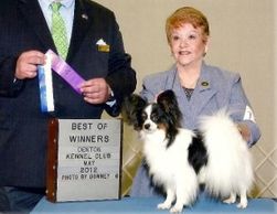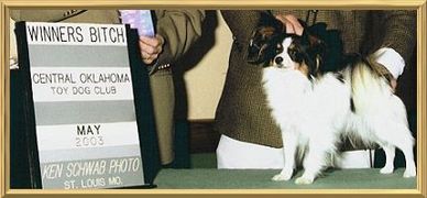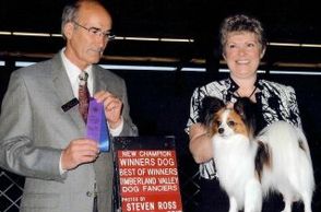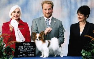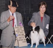 He has won 2 Best in Shows, finished his UKC Championship, finished #1 Papillon in 2004 and went on to place #5 dog in the nation in UKC.