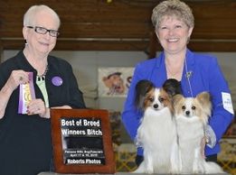 She has been BOS Multiple times to BISS BIS CH Queen Bless JP Princaple Kid The #1 Papillon In The World. Judges have made comments about her being one of the nicest bitches they have seen! She is a BIS Int/Nat CH and a AKC CH. Carmela received 3 majors, 1 major was in the Toy Specialty!